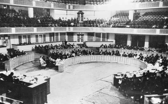 1955年4月18日至24日,29个亚非国家和地区的政府代表团在印度尼西亚万隆召开亚非会议。图为万隆亚非会议会场内景。新华社记者钱嗣杰摄