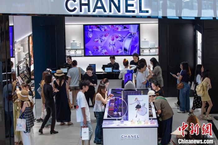 5月2日,消费者在cdf海口国际免税城选购化妆品。中新社记者 骆云飞 摄