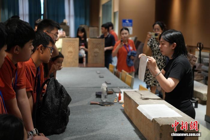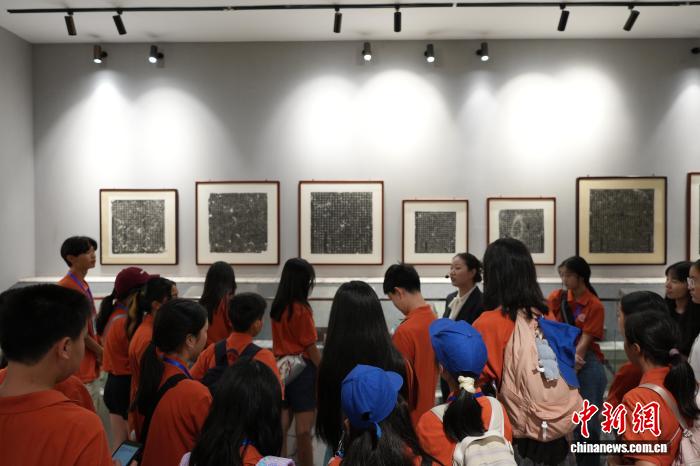 图为海外华裔青少年参观古代墓志像。连晨宇 摄