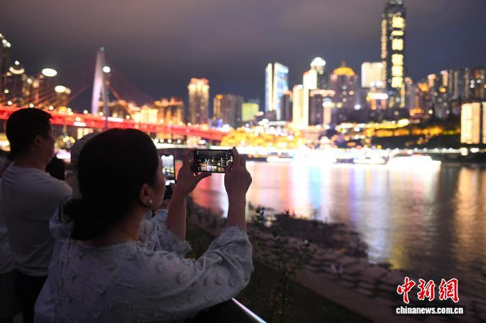 图为嘉宾正在拍摄重庆夜景。中新网记者 周毅 摄