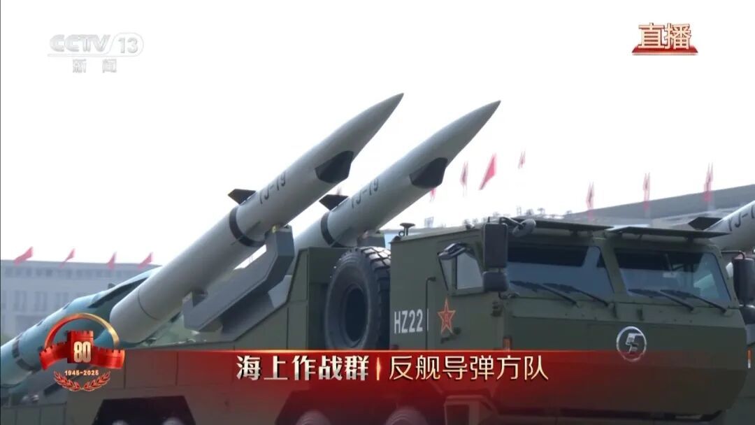 反舰导弹方队,由鹰击-15导弹和鹰击-19、鹰击-17、鹰击-20高超声速导弹编成,可部署在舰载机、水面舰艇、潜艇等多种平台,射程远、速度快、毁伤强,是打击海上之敌的尖兵利器。