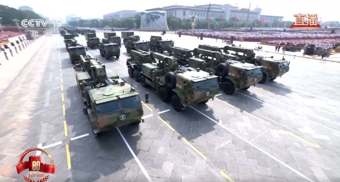 国之重器,压舱基石。受阅的“惊雷-1”空基远程导弹,“巨浪-3”潜射洲际导弹,“东风-61”陆基洲际导弹,“东风-31”新型陆基洲际导弹,首次集中展示我军陆、海、空基“三位一体”战略核力量,是维护国家主权、捍卫民族尊严的战略“王牌”。