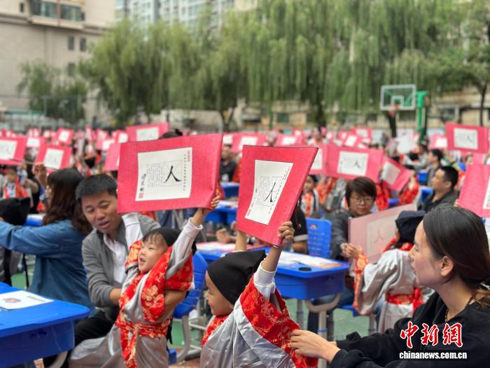 点朱砂写“人”字正衣冠 兰州一小学新生“开笔启智”