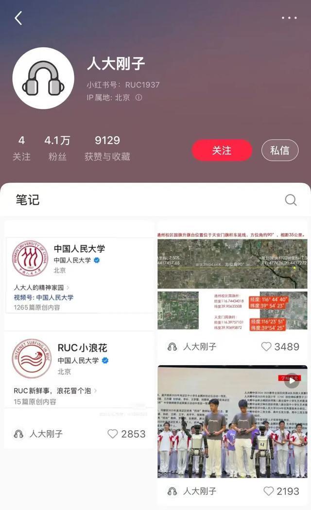 人大刚子起号3天吸粉4万 书记接地气互动获赞声!9月7日上午,认证为中国人民大学官方账号的“RUC小浪花”发文确认,“人大刚子”是该校党委书记张东刚的个人小红书账号。该账号在9月6日开始连续发布了两条与人大相关的帖文,截至9月8日上午10时,粉丝量已达4万。