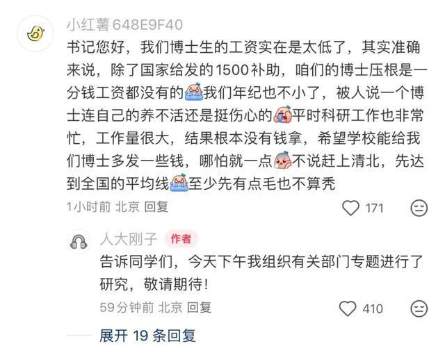有网友对此表示震惊,称其为“真的实名上网”。在“人大刚子”的评论区,除了许多点赞的声音外,还有不少校友和校内学生提出的治校建议。从目前他对学生建议的回复来看,重点集中于学校建设和生活便利度方面。