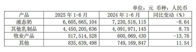 近日,光明乳业(600597.SH)披露了2025年半年度报告。