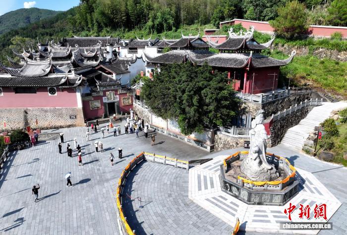 9月14日,“把闽东之光传播开去”——海外华文媒体宁德行活动走进福建宁德,领略闽东的锦绣河山,感知闽东的灿烂文化,此次活动共有12国16家海外华文媒体代表前来参访。图为海外华文媒体代表参观古田县临水宫祖庙。中新社记者 吕明 摄