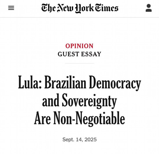 在这篇题为《巴西的民主和主权不容谈判》的文章中,卢拉写道,他对最高法院的裁决感到“自豪”,该裁决“维护了我们的机构和民主法治”,“这不是特朗普和其他美国官员所说的‘政治迫害’”。这是卢拉对博索纳罗定罪的首次公开表态。