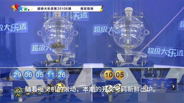 随着摇奖机滚动,本期的开奖号码揭晓:前区号码为05、06、11、26、29,后区号码为05、10。具体出号顺序为前区29、06、05、11、26,后区10、05。