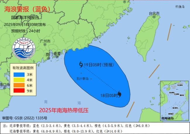 国家海洋预报台今天早上发布海浪和风暴潮双蓝色警报。预计今天上午到明天上午,南海东北部将出现3到3.8米的大浪区;广东东部近岸海域将出现2到3.3米的中浪到大浪。广东潮州到深圳沿海将出现30到80厘米的风暴增水。