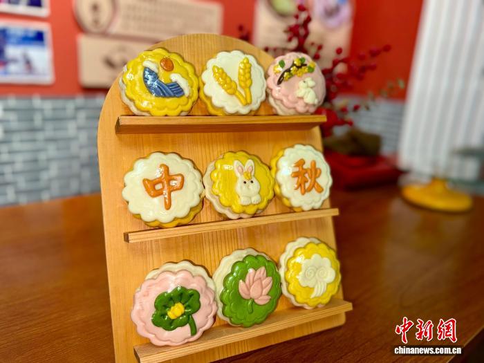 9月18日,图为马瑞为今年中秋节推出的“馍”法月饼。王牧雨 摄