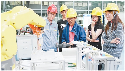 泰国鲁班工坊开展自动化生产线实训。