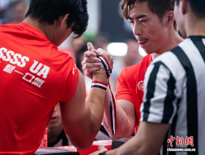 图为两名参赛选手奋力争胜。中新网记者 侯宇 摄