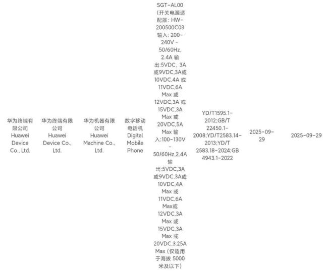 根据网上信息,新入网的三款机型分别为 VYG-AL00、SGT-AL00 和 SGT-AL50,大概率对应的是 Mate 80、Mate 80 Pro 和 Mate 80 Pro+。型号为 VYG-AL00 的机型支持 66W 有线充电,而型号为 SGT-AL00 和 SGT-AL50 的新机则支持 100W 有线快充。