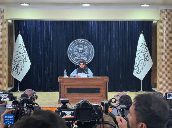 10月12日,阿富汗政府发言人扎比乌拉·穆贾希德在首都喀布尔举行的记者会上发言。新华社记者 李昂 摄