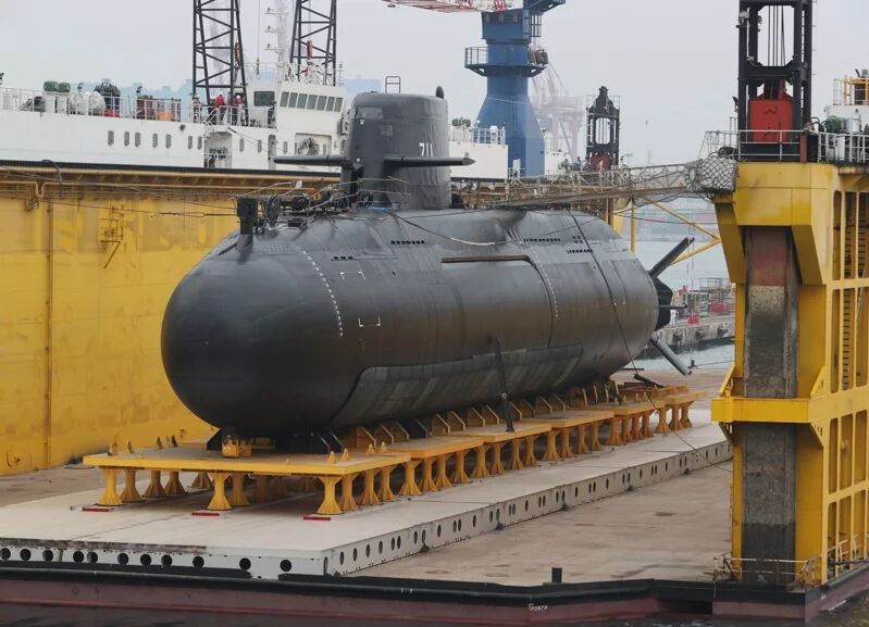 正因现役潜艇老旧落后,几次试图从海外引进潜艇也“求购无门”,台海军决定自行建造。2017年,台当局与台船和“中科院”签约启动造舰计划,以天价预算建造八艘排水量2500吨级的常规柴电潜艇。2023年9月28日,“海鲲”号下水并命名。