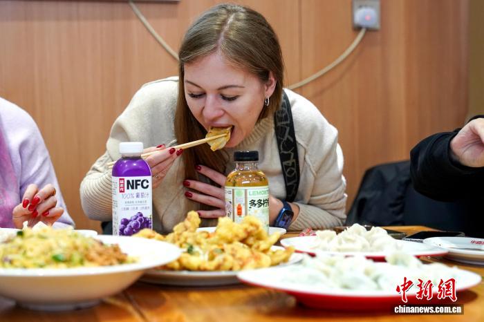 俄罗斯游客在饶河品尝中国饺子。中新社记者 赵宇航 摄