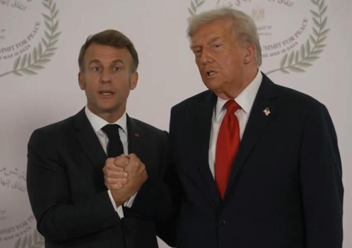 英国《独立报》称“特朗普再现掰腕式握手,‘锁死’马克龙26秒”。握手结束后,马克龙转身时似乎也长舒了一口气。