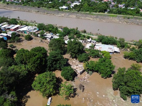这是10月12日在墨西哥韦拉克鲁斯州波萨里卡拍摄的强降雨后的景象(无人机照片)。新华社发(弗朗西斯科·卡涅多摄)