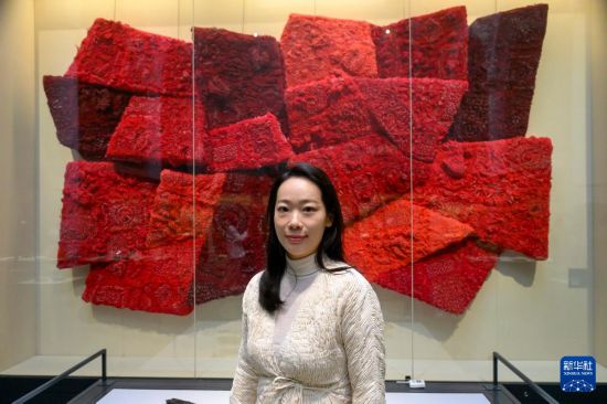 10月27日,在英国伦敦维多利亚与阿尔伯特博物馆(V&A),李晓欣参加《多维:中国当代工作室工艺》展览媒体预展。新华社发(雷伊·唐摄)
