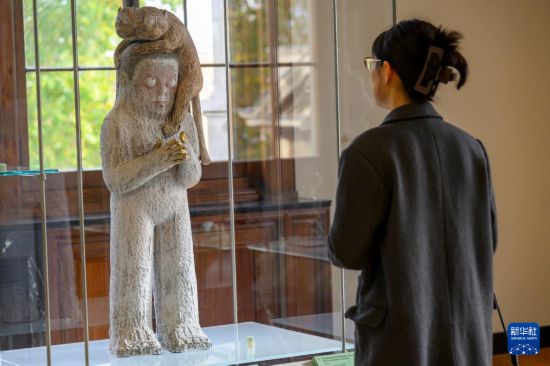 10月27日,在英国伦敦维多利亚与阿尔伯特博物馆(V&A),一名女子在《多维:中国当代工作室工艺》展览媒体预展上参观。新华社发(雷伊·唐摄)