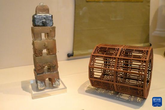 这是10月27日在英国伦敦维多利亚与阿尔伯特博物馆(V&A)举行的《多维:中国当代工作室工艺》展览媒体预展上拍摄的展品。新华社发(雷伊·唐摄)