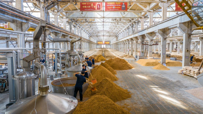 二是生产端,推行“1+1”生产模式,一方面在前端坚持传统古法固态酿造工艺,让传统的更原始,让古井贡酒国家级非遗酿造技艺有序传承发展;另一方面在后端大力推进标准化、数字化、智能化,掌握关键参数,借助大数据、物联网技术实现快速分析和精准控制,让现代的更智能,实现绿色酿造、智能酿造、科学酿造。