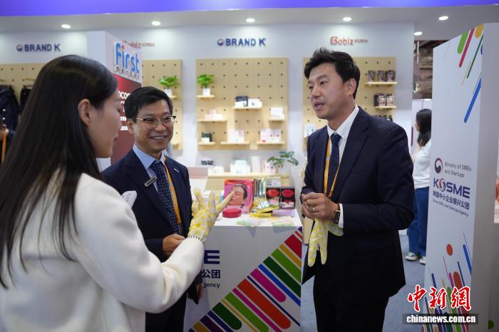 韩国中小企业振兴公团是第3年组团参加进博会。此番,36家韩国中小企业带来了百余种产品,涵盖化妆品、食品、保健产品等。在展厅里,一家主打手膜和脚膜产品的韩国化妆品企业相当“吸睛”,前来洽谈的采购商围满了展台。该企业在上一届进博会上实现了2000万元人民币的销售额。韩国中小企业振兴公团东北亚总部本部长金相佑说:“韩国企业非常看好中国市场的潜力,相信今年的销售额会有更大的突破。”