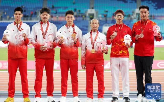 11月19日,第十五届全国运动会田径项目男子200米决赛在广州举行。广东队选手施君豪获得冠军,他的队友林健豪获得亚军,重庆队选手官鑫获得季军。
