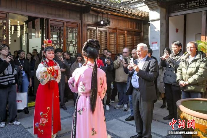 嘉宾们欣赏越剧表演。“2025世界市长对话·南京”活动组委会供图