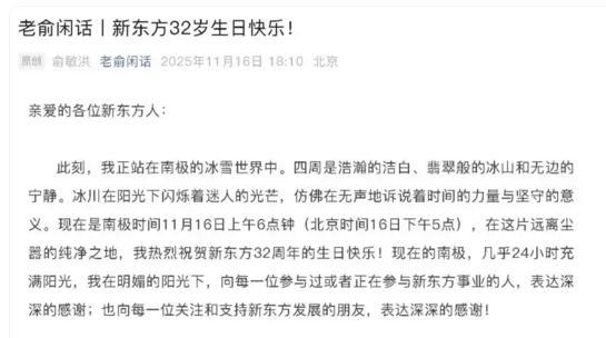 员工去南极能否救得了俞敏洪翻车 沟通落差引争议!11月16日,新东方迎来32周年纪念日,创始人俞敏洪身处南极向全体员工发出一封全员信。这封本是庆祝公司生日、激励员工的公开信却引发诸多争议。有网友认为,作为老板,少点鸡汤,多点实际行动,给员工加薪才是最好的激励。