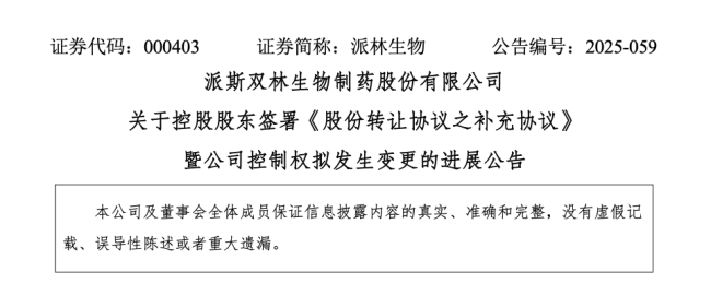 近47亿元派林生物控制权将变更