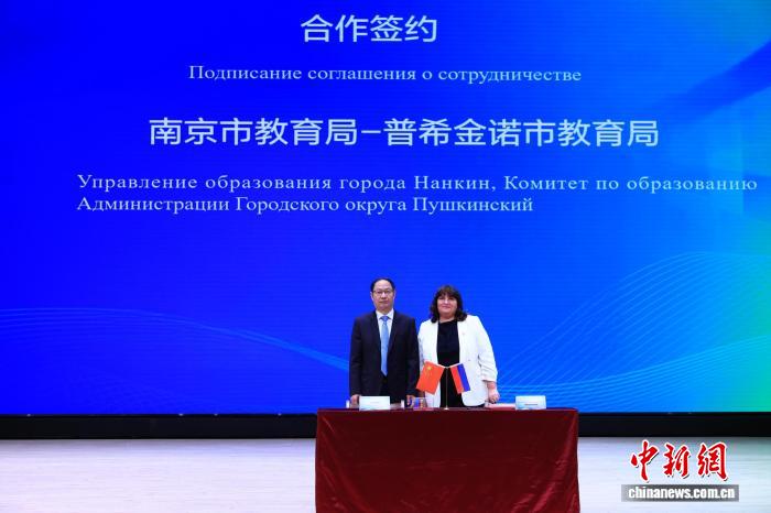 南京市教育局与普希金诺市教育局正式签署战略合作备忘录。曾威 摄
